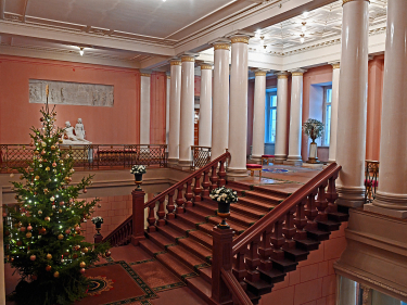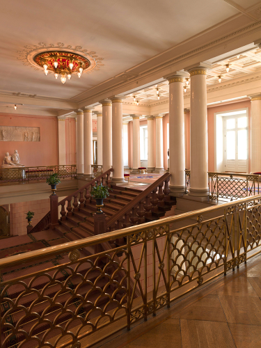 ”Da en saadan Vestibule er tilgjengelig for alle og det første Indtryk gir størst Virkning, har jeg anseet det for passende at give denne Vestibule saavel som Hovedtrappen i det Hele en imponerende Charakter”