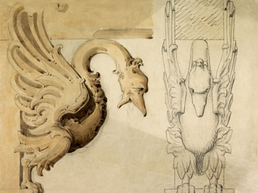 It is well-known that the architect Johan Henrik Nebelong collaborated with the painters Joachim Frich and Adolph Tidemann on the decoration of the Dining Hall at Oscarshall. He designed the room in such a way that the paintings stood out, but at the same time appeared as part of the overall architectural design.