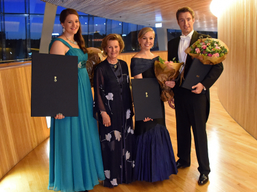 Prize winners achieve valuable exposure, significant cash prizes, important concert and opera engagements and assistance in developing their careers. Queen Sonja presents the award, including a graphic print signed The Queen herself. The prize winners have achieved engagements at most of the world's leading opera houses as results of their performances in Oslo.