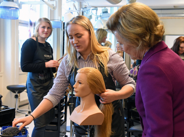 Queen Sonja visited the schools and presented the award herself until 2021. This is from Firda Upper Secondary School in Sogn and Fjordane. Photo: Sven Gj. Gjeruldsen, The Royal Court