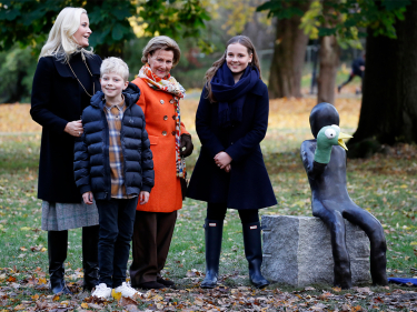 Dronningen, Kronprinsessen og Prinsessen ankommer avdukingen av Roggbif og Mannen uten ansikt i 2017. Foto: Lise Åserud, NTB scanpix