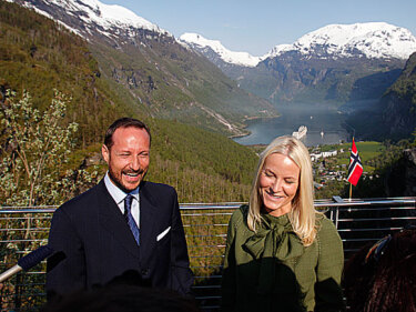 GeirangerThe Crown Prince and Crown Princess at the viewing point where the first press meeting tokk place (Photo: Stian Lysberg Solum / NTB scanpix) -