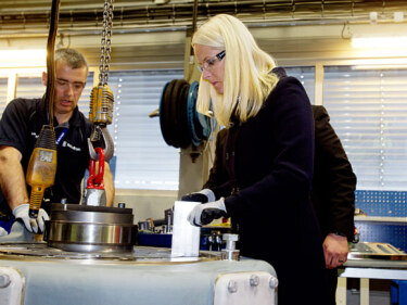 BrattvågKristine Fjørtoft Roald and Suad Selak gave an orientation at the Rolls-Royce production plant in Brattvåg. (Photo: Stian Lysberg Solum / NTB scanpix) -