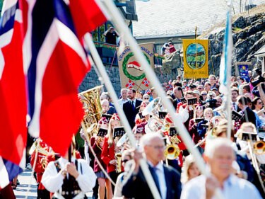 GeirangerA whole parade accompanied The Royal Highnesses back to the Royal Yacht (Photo: Stian Lysberg Solum / NTB scanpix) -