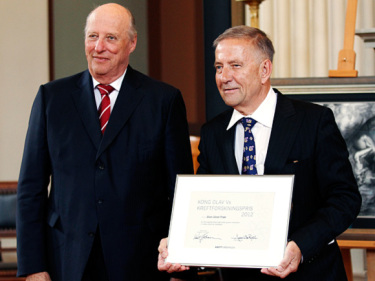 June11 June: King Harald presents the King Olav V's Cancer Research Award 2012 to Professor Claes Göran Tropé (Photo: Erlend Aas / NTB scanpix) -