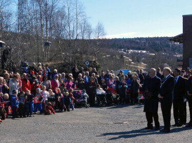 April30 April: King Harald vistis Holtålen - one of the municipalites that was hit by flood in 2011. (Photo: Sven Gj. Gjeruldsen, the Royal Court) -