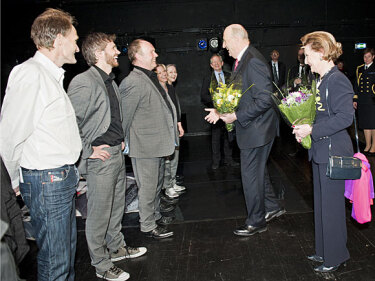 March29 March: The King and Queen attend the performance =Oslo at the Norwegian Theatre. After the show, Their Majesties met actors and representatives from the street magazine on which the performance is based (Photo: Fredrik Varfjell, Scanpix). -