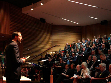 Transatlantic Science Week25 October: Crown Prince Haakon gives the opening adress at the Transatlantic Science Week at Berkeley, California (Photo: Robert Galbraith, Reuters / Scanpix) -