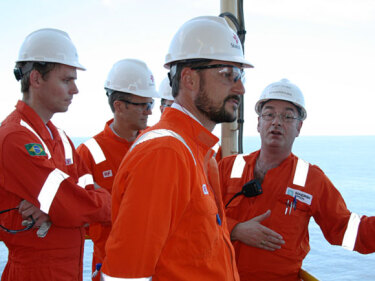 The Peregrino Oil Field24 May: Crown Prince Haakon officially opens the Peregrino oil field off the coast of Brazil. Here on board the production vessel Maersk Peregrino with Minister of Petroleum and Energy Ola Borten Moe and Statoil's Helge Lund (Photo: Runa Hestmann Tierno / Scanpix) -