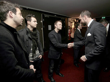 Charity concert21 March: Crown Prince Haakon attends the charity concert "Gift to Japan" at Folketeateret in Oslo. Here with A1, one of the bands that played at the event. (Photo: Scanpix) -