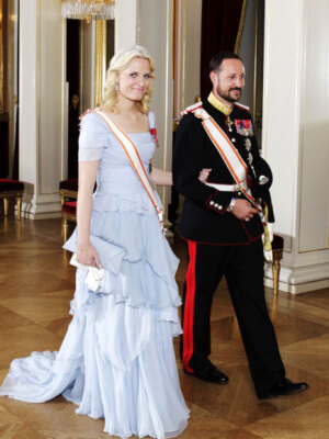 State visit from Lithuania5 April: The Crown Prince and Crown Princess attends ceremony welkoming the President of Lithuania to Norway. Here they arrive for the gala banquet held in honour of the President at the Royal Palace (Photo: Erlend Aas / Scanpix) -