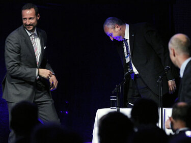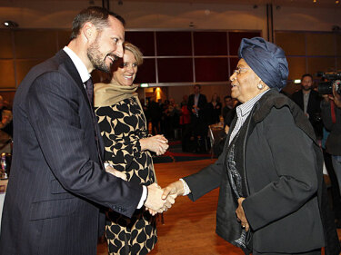 Norad conference12 December: Crown Prince Haakon attends the Norad Conference in Oslo, meeting Nobel laureate and President of Liberia, Ms Ellen Johnson Sirleaf (Photo: Håkon Mosvold Larsen, Scanpix) -