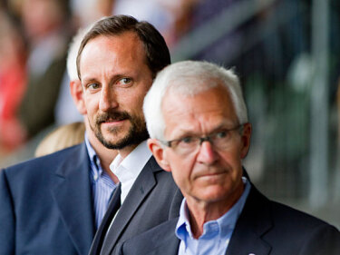 Memorial ceremony11 May: Crown Prince attends the memorial ceremony in honour of long distance runner Grete Waitz at Bislett Stadium. Here with Jack Waitz. (Photo: Thomas Winje Øijord / Scanpix) -