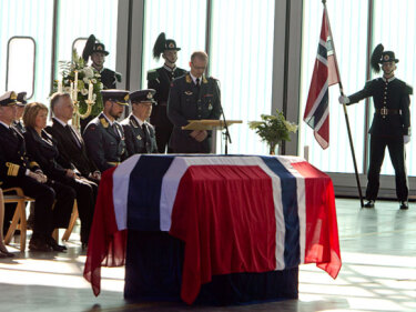 Met the casket7 April: Crown Prince Haakon er is in attendance when the casket carrying Siri Skare arrives in Norway from Afghanistan (Photo: Heiko Junge / Scanpix) -