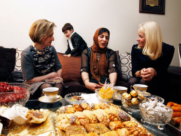 Tea Time10 March: Queen Sonja and Crown Princess Mette-Marit visit the Adampour family. The visit was part of the campaign Tea Time, where muslims invite non-muslims to tea and conversation (Photo: Lise Åserud, Scanpix) -