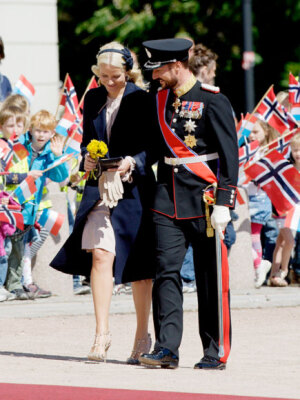 Constitution Day17 May: The Crown Prince and Crown Princess' family greet the Children's Parade in Asker outside Skaugum estate (Photo: Heiko Junge / Scanpix) -