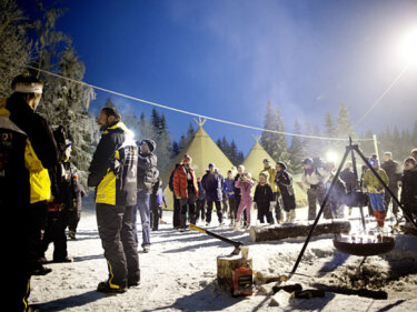 Day 3: Into the woodsIn the evening, Crown Pince Haakon visited some of the people that are camping out in Nordmarka for the World Championships (Photo: Kyrre Lien / Scanpix) -