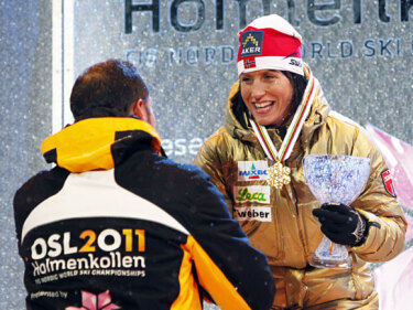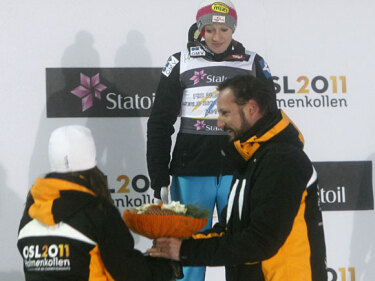 Day 3: Award ceremonyCrown Prince Haakon presents the awards after the cross country 2 x 7,5 km, where Marit Bjørgen won her second gold in these championships (Photo: Lise Åserud / Scanpix) -