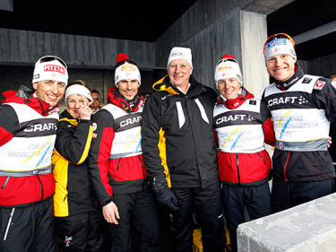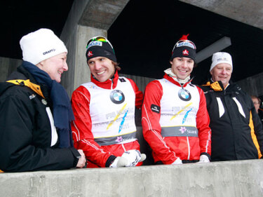 Day 5: Nordic combinedThe King and Queen welcomed the Nordic combined team of Austria - Mario Stecher, Felix Gottwald, David Kreiner and Bernhard Gruber - to the Royal stands after Austrian gold in the Nordic combined normal hill for teams (Photo: Lise Åserud / Scanpix) -