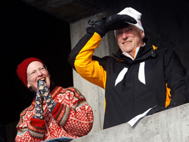 Day 1: SprintKing Harald and Queen Sonja watch the sprint from the Royal stands (Photo: Erik Johansen / Scanpix) -