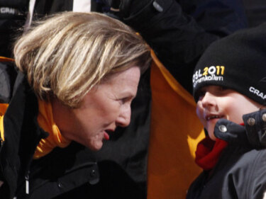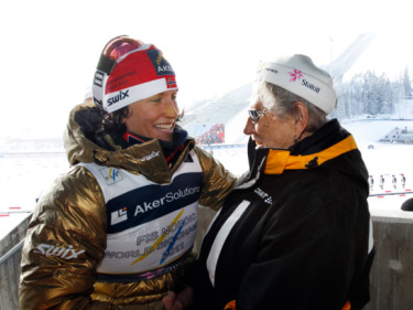 Day 5: Cross country 10 kmPrincess Astrid, Mrs Ferner congratulates Marit Bjørgen after Bjørgen's gold on the 10 km cross country (Photo: Lise Åserud / Scanpix) -
