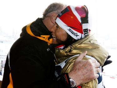 Day 5: Cross country 10 kmKing Harald gives world champion Marit Bjørgen a hug after the 10 kilometer cross country (Photo: Lise Åserud / Scanpix) -