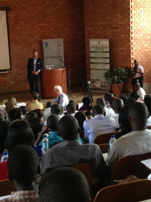 Zambia 2013Crown Prince Haakon gives a presentation of the UN Millennium Goals at the University of Zambia (Foto: UNDP) -