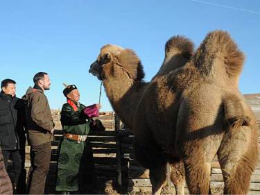 LivestockCrown Prince Haakon is shown the livestock of nomadic herder Gantuya (Photo: D. Rentsendorj, Montsame news agency) -