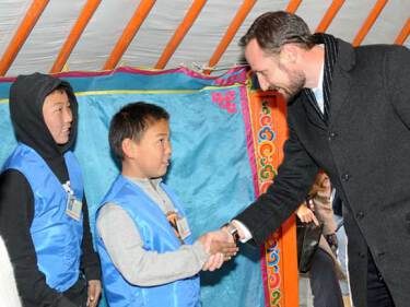 Our Home Ger SchoolCrown Prince Haakon is greeted by students at "Our home Ger School" in Ulaanbaatar (Photo: D. Rentsendorj, Montsame news agency) -