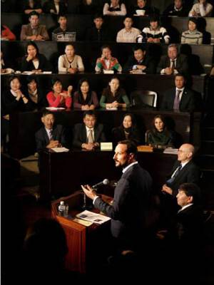 LectureCrown Prince Haakon giving a lecture on the UN millenium goals at Mongol National University (Photo: Agnete Brun) -