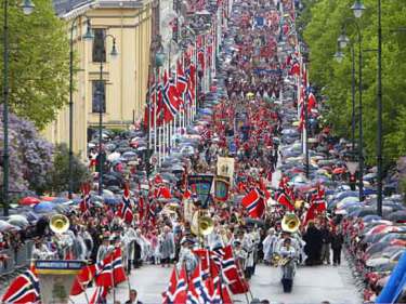 MayThe Children's Parade in Oslo 17 May going up Karl Johan's street towards the Palace (Photo: Cornelius Poppe, Scanpix) -