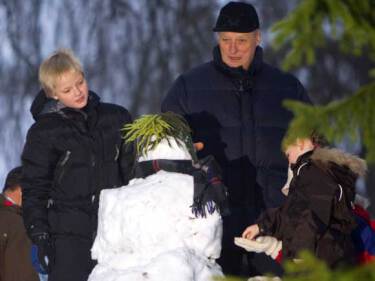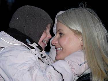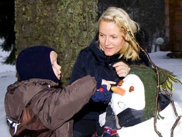 ChristmasCrown Princess Mette-Marit and Prince Sverre Magnus with the snowman (Photo: Heiko Junge, Scanpix) -