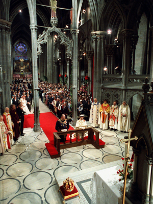 King Harald and Queen Sonja were consecrated in Nidaros Cathedral 23 June 1991 (Photo: Bjørn Sigurdsøn, Scanpix)