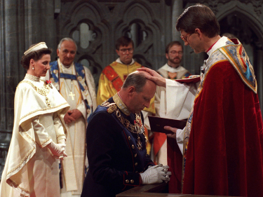 King Harald was consecrated by bishop Wagle (Photo: Bjørn Sigurdsøn, Scanpix)