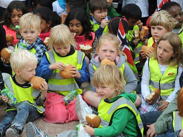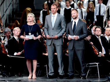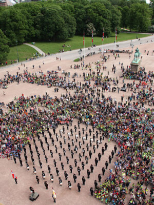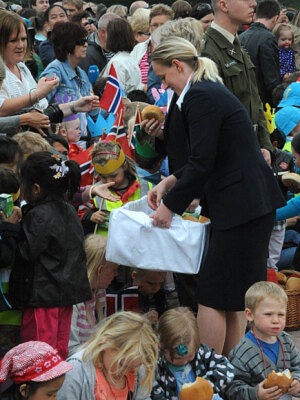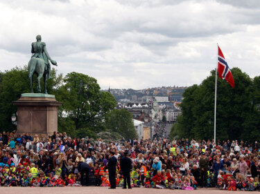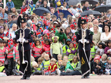 King Harald and Queen Sonja both celebrated their 75th anniversaries in 2012. The official celebrations took place 31 May, with sweetbuns and juice for the children in the Palace Square and a concert on the roof of Oslo Opera House (Photo: Stian Lysberg Solum / NTB scanpix)