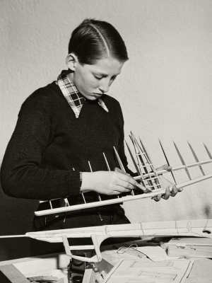 Prins Harald bygger modellfly på Skaugum, 1949. Foto: NTB, De kongelige samlinger