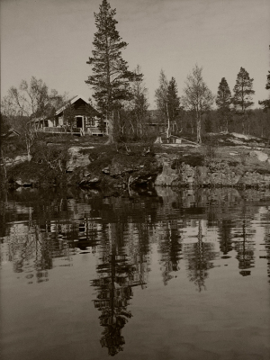 Trangen i BalsfjordHytta Trangen i Balsfjord. Kong Haakon og Kronprins Olav bodde her fra 2. mai til 7. juni 1940, Foto: De kongelige samlinger -