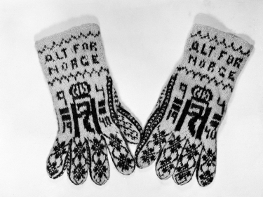 Selbu mittensThe People's support for King Haakon took many forms. Here, knitted mittens with the King's arms and motto (Foto: Scanpix) -