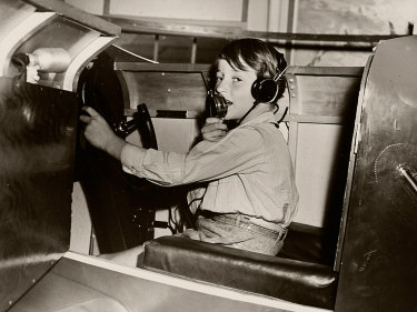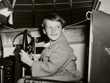 Little NorwayPrins Harald i flysimulatoren Muskoka Aerodrome ved "Little Norway", det norske flyvåpenets treningsleir i Canada. Foto: Norwegian Official Photo, De kongelige samlinger -