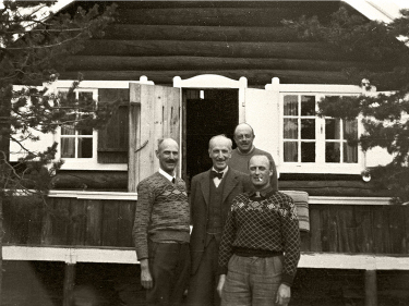 Trangen i BalsfjordKonge og Kronprins utenfor Trangenhytta i Balsfjord. Mellom 2. mai og 7. juni 1940 ble Norge styrt herfra. Foto: Nikolai Ramm Østgaard, De kongelige samlinger. -