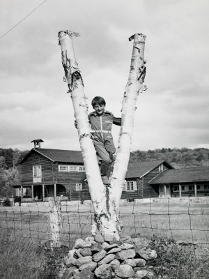 The King's BirchThey keep traveling north. Here: King Haakon and Crown Prince at "the King's Birch" outside Molde. The picture was to become an important symbol of Norwegian resistance. Photo: Per Bratland, Nina Bratland's archive. -