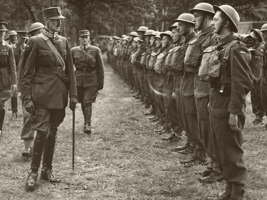 Besøker tropperKong Haakon og Kronprins Olav inspiserer norske soldater i Inverness, Skottland, 1941. Foto: De kongelige samlinger -