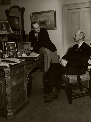 Siste statsrådKong Haakon og Kronprins Olav ankommer Tromsø bispegård og siste statsråd på norsk jord, 7. juni 1940. Foto: Ukjent, De kongelige samlinger -