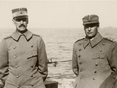 On board the DevonshireKing Haakon and Crown Prince Olav on board the Devonshire headed for England (Photo: The Royal Court Photo Archives) -