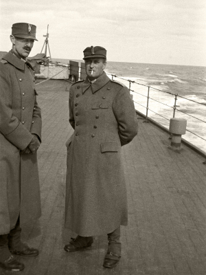 DevonshireKong Haakon og Kronprins Olav på dekk under overfarten til England. Foto: Nikolai Ramm Østgaard, De kongelige samlinger. -