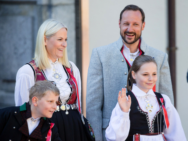 Happy Constitution Day! The Royal Family greets the Children's Parade in Oslo from the Palace balcony. But first, the Crown Prince and Crown Princess with their family greeted the Children's Parade in Asker outside Skaugum etstate.