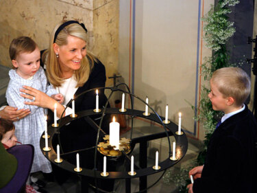 Crown Princess Mette-Marit lights the circle of light with the help of Maud Angelica and Princess Ingrid Alexandra (Photo: Tor Richardsen / Scanpix)