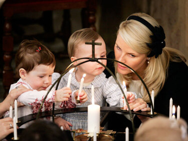 Crown Princess Mette-Marit with Princess Ingrid Alexandra and Marius by the circle of light (Photo: Jon Eeg / Scanpix)