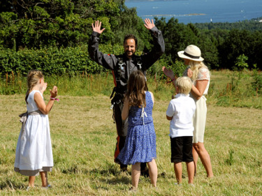 ArrivalThe Crow Prince arrived by parachute (Photo: Sven Gjeruldsen / the Royal Court / NTB scanpix) ArrivalThe Crow Prince arrived by parachute (Photo: Sven Gjeruldsen / the Royal Court / NTB scanpix)
