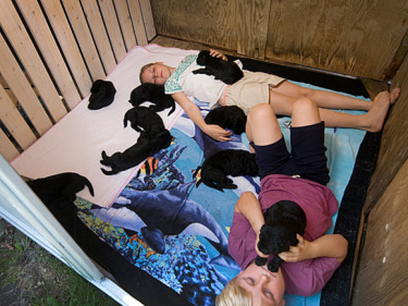 With the puppiesPictures of the Crown Prince and Crown Princess' family with the nine puppies, July 2013 (Photo: Veronica Melå / Utenfor Allfarvei AS / The Royal Court) -